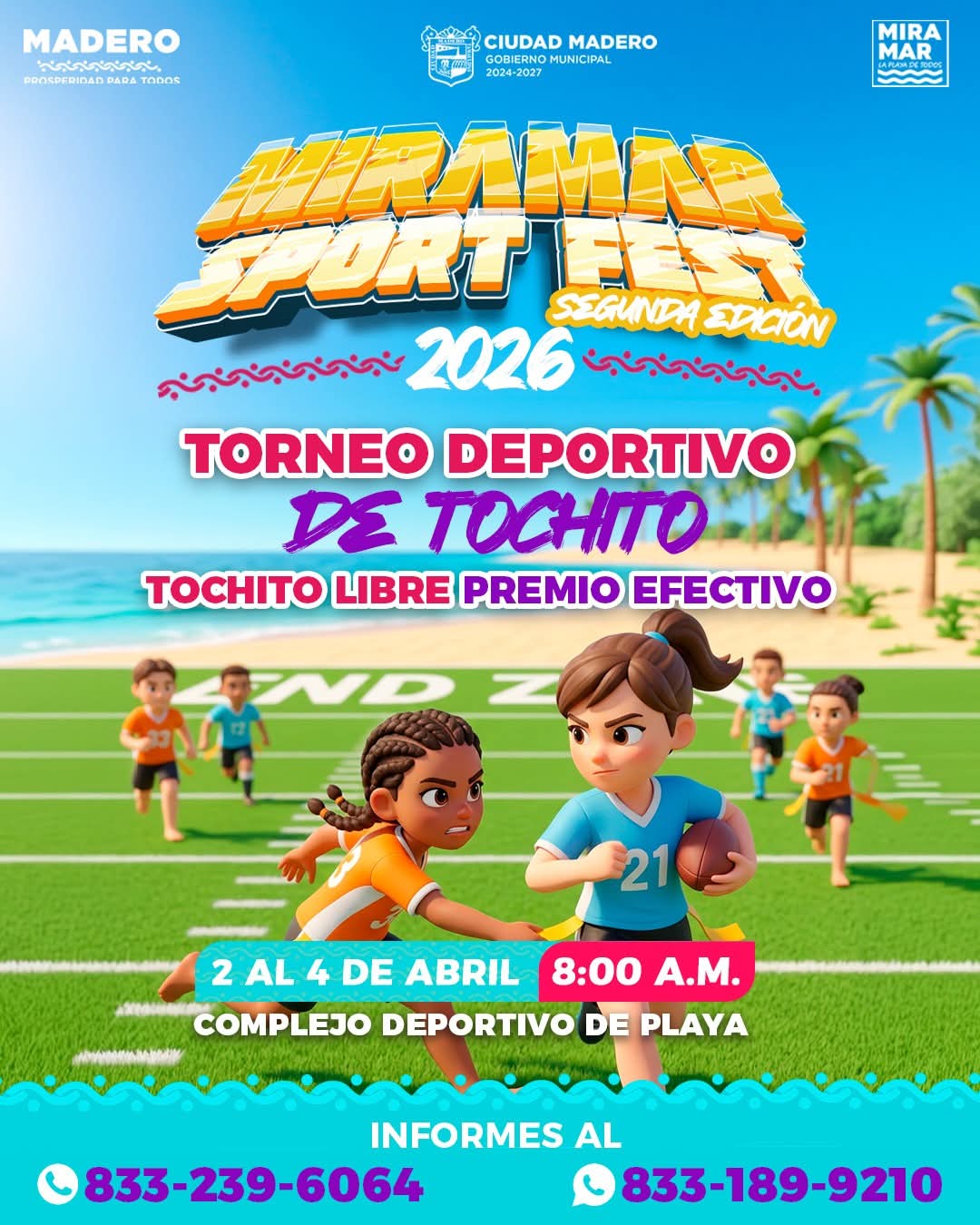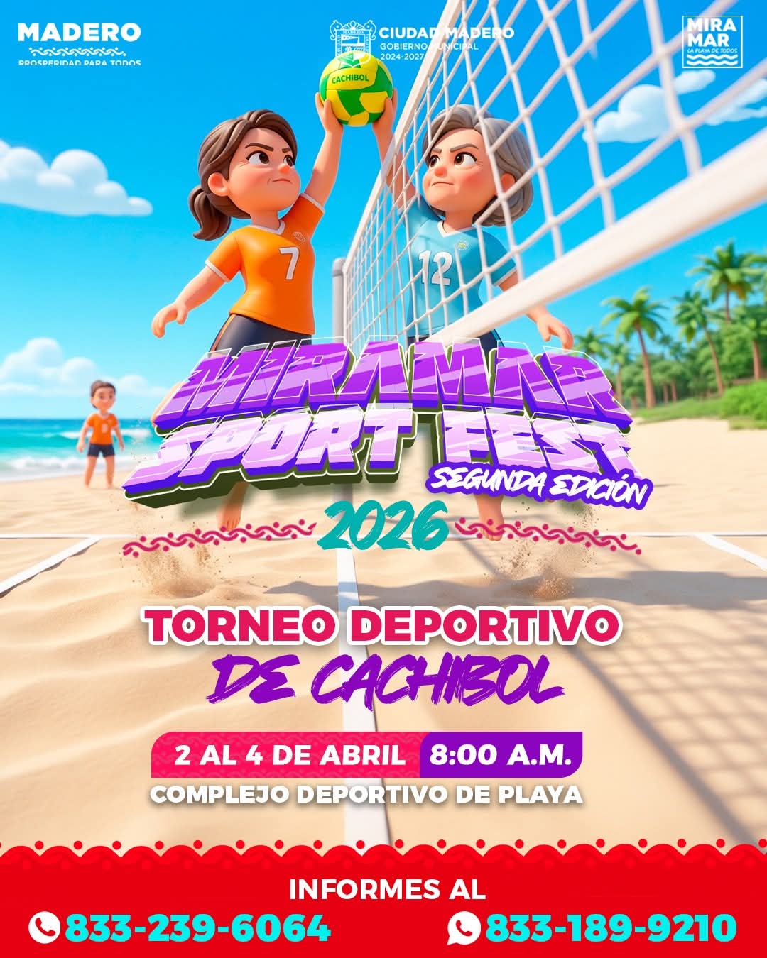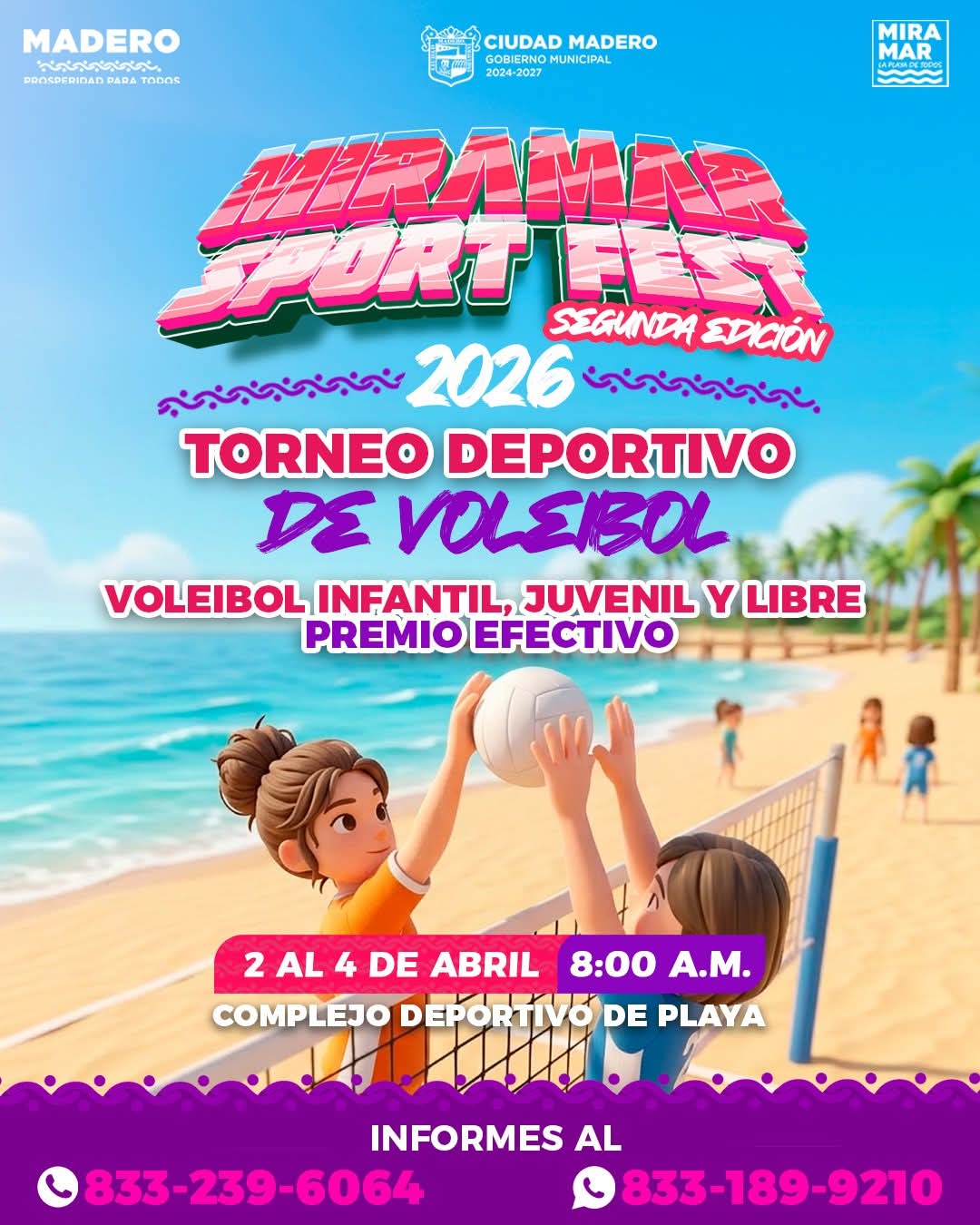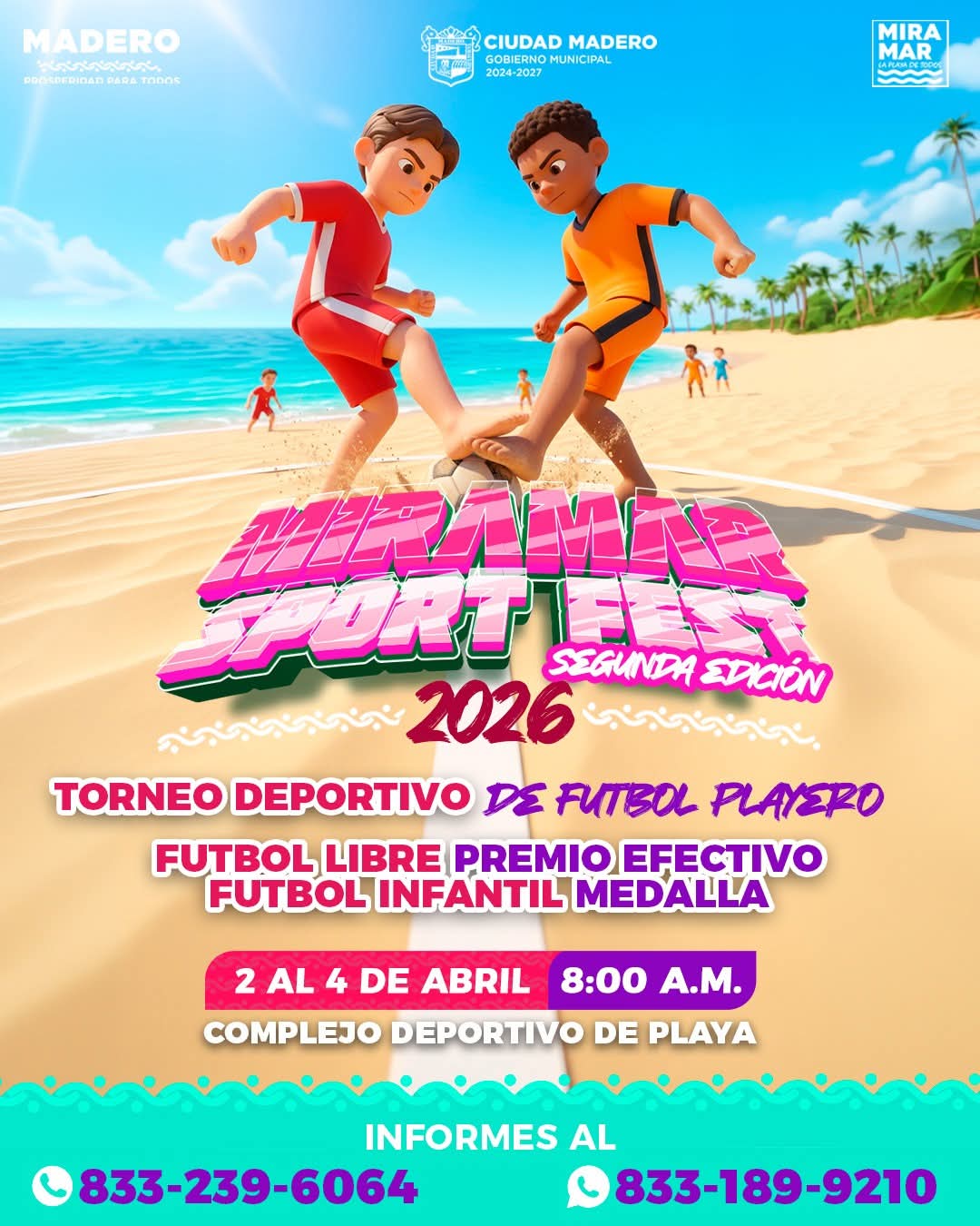 Con el Miramar Sport Fest 2026, Ciudad Madero se prepara para vivir uno de los eventos más esperados de la temporada vacacional de Semana Santa, el cual reunirá a visitantes y locales en un ambiente lleno de entusiasmo, convivencia y sana competencia frente al mar los días 2, 3 y 4 de abril.