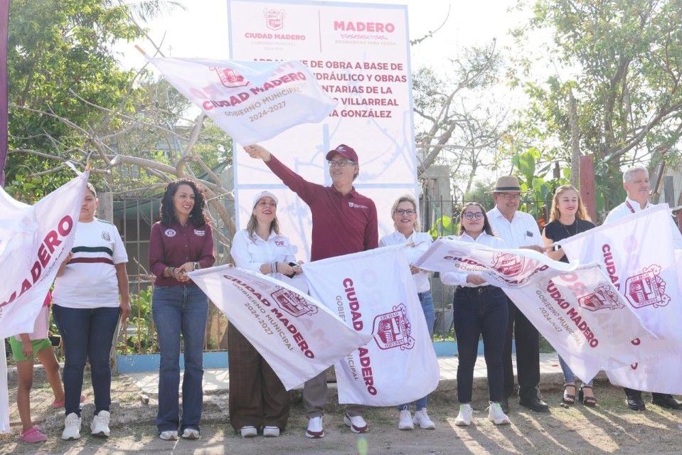 El presidente municipal Erasmo González Robledo, acompañado de la presidenta del Sistema DIF de Ciudad Madero, Dunia Marón Acuña, así como de síndicos, regidores y directores generales, dio el banderazo de arranque a cinco obras que marcan el inicio del programa de obra pública 2026, en las que se aplica una inversión global de 14 millones 914 mil 110.77 pesos, impactando una superficie total de 50 mil 775 metros cuadrados, en beneficio directo de las familias maderenses.